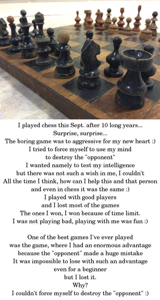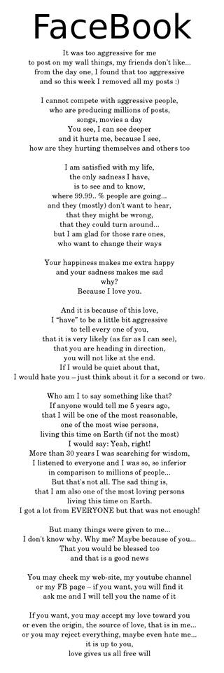 I am trying to give people as much as I can and as much as they want. Some people don't like me and so I remove myself :) to some people I can give a smile :), to some people I give... But the more I want to give, the more I receive - in a completely another way, but I do. And I want to tell everyone - I LOVE YOU, everyone - those, who were nice to me and those, who weren't. It doesn't matter. But very rare are people, to whom I can give everything I have... and I have a lot! :) Or at least the essence! They don't want it, so I don't give.