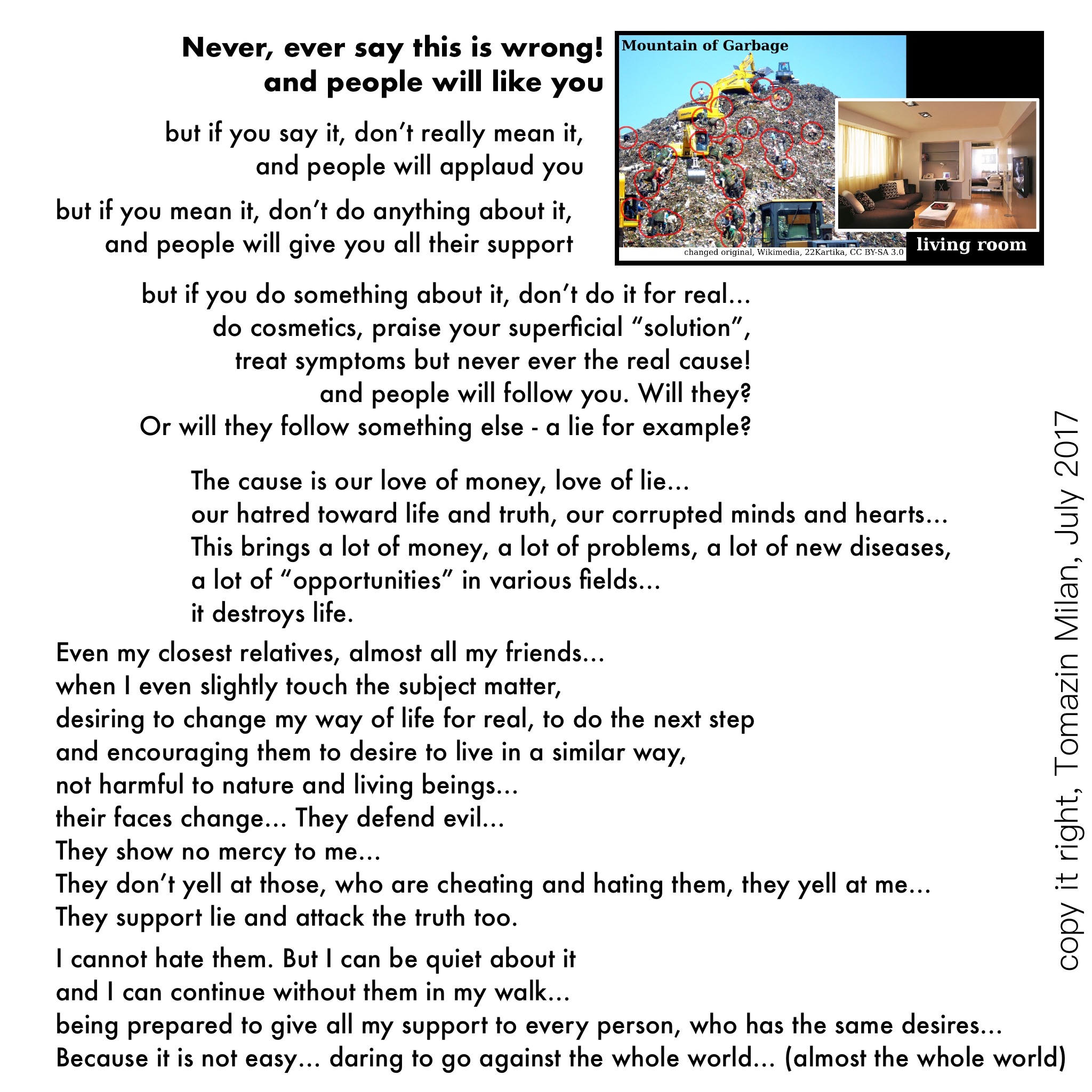 Vzrok je naša ljubezen do denarja, ljubezen do laži...