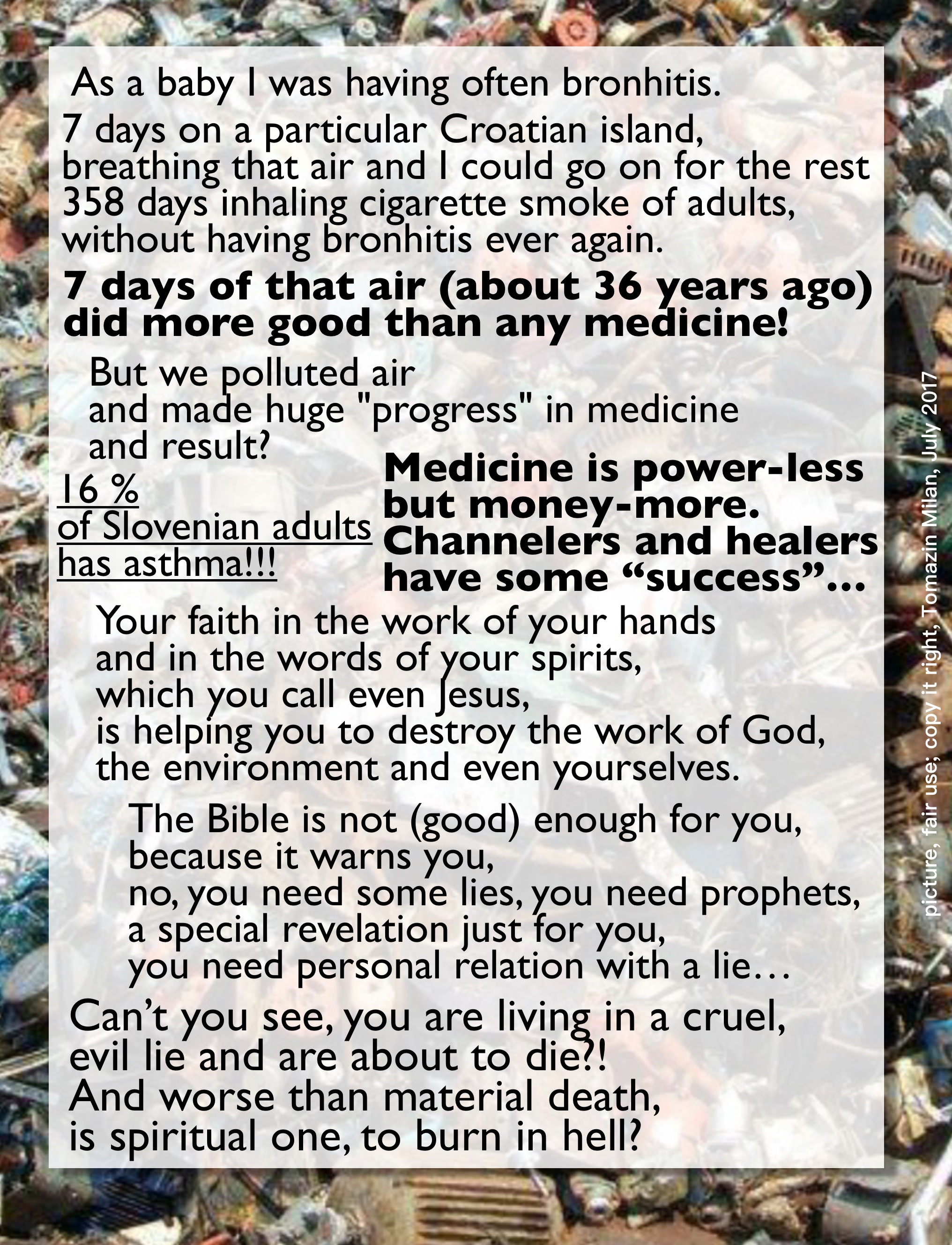 7 dni na določenem hrvaškem otoku, 7 dni dihanja tistega zraka in sem lahko preostalih 358 dni inhaliral cigaretni dim odraslih, ne da bi imel še kdaj bronhitis.