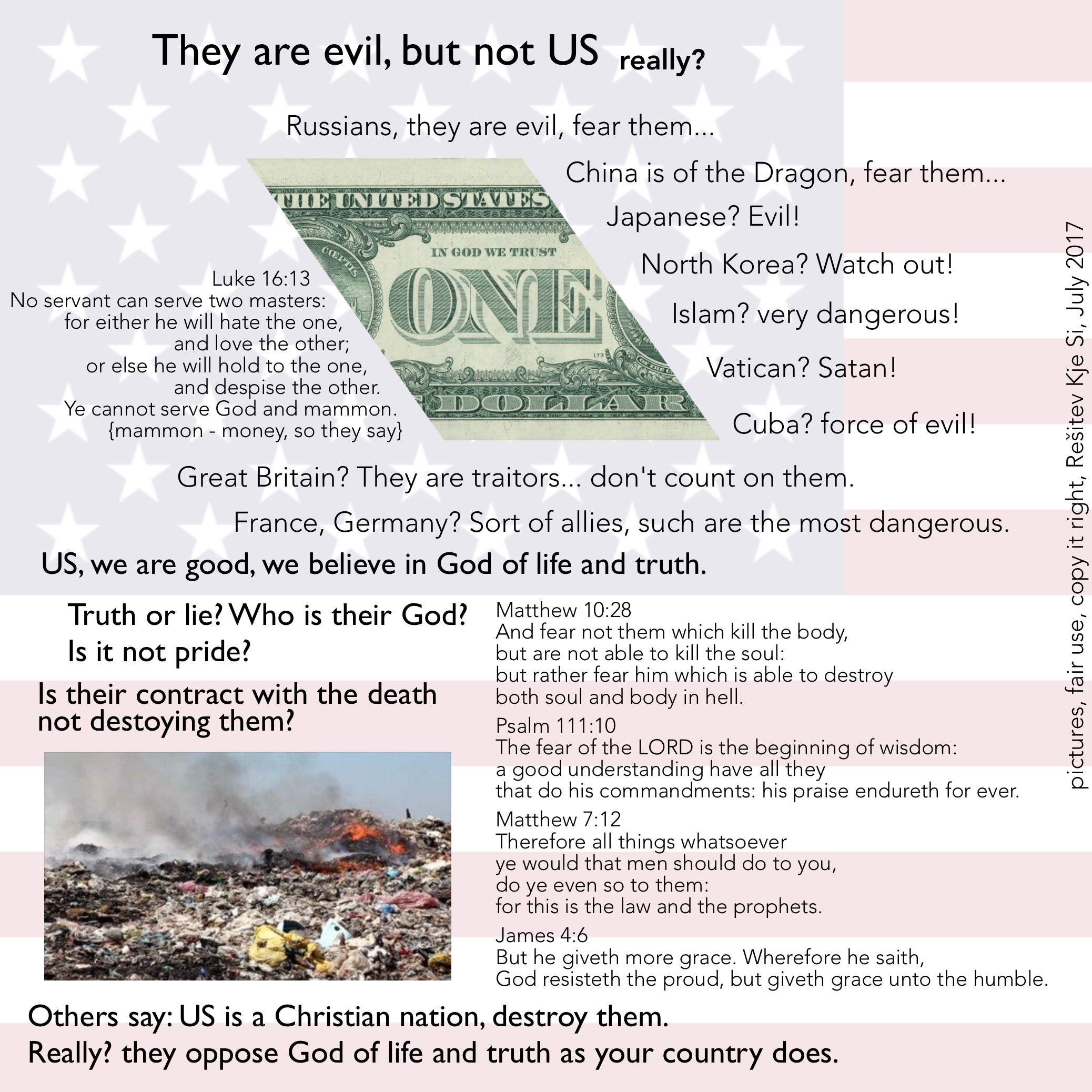 US, (ZDA, mi) mi smo dobri, mi verjamemo v Boga življenja in resnice.