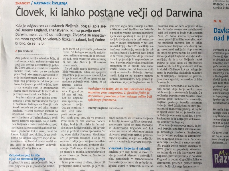 "Človek, ki lahko postane večji od Darwina... Jeremy England"