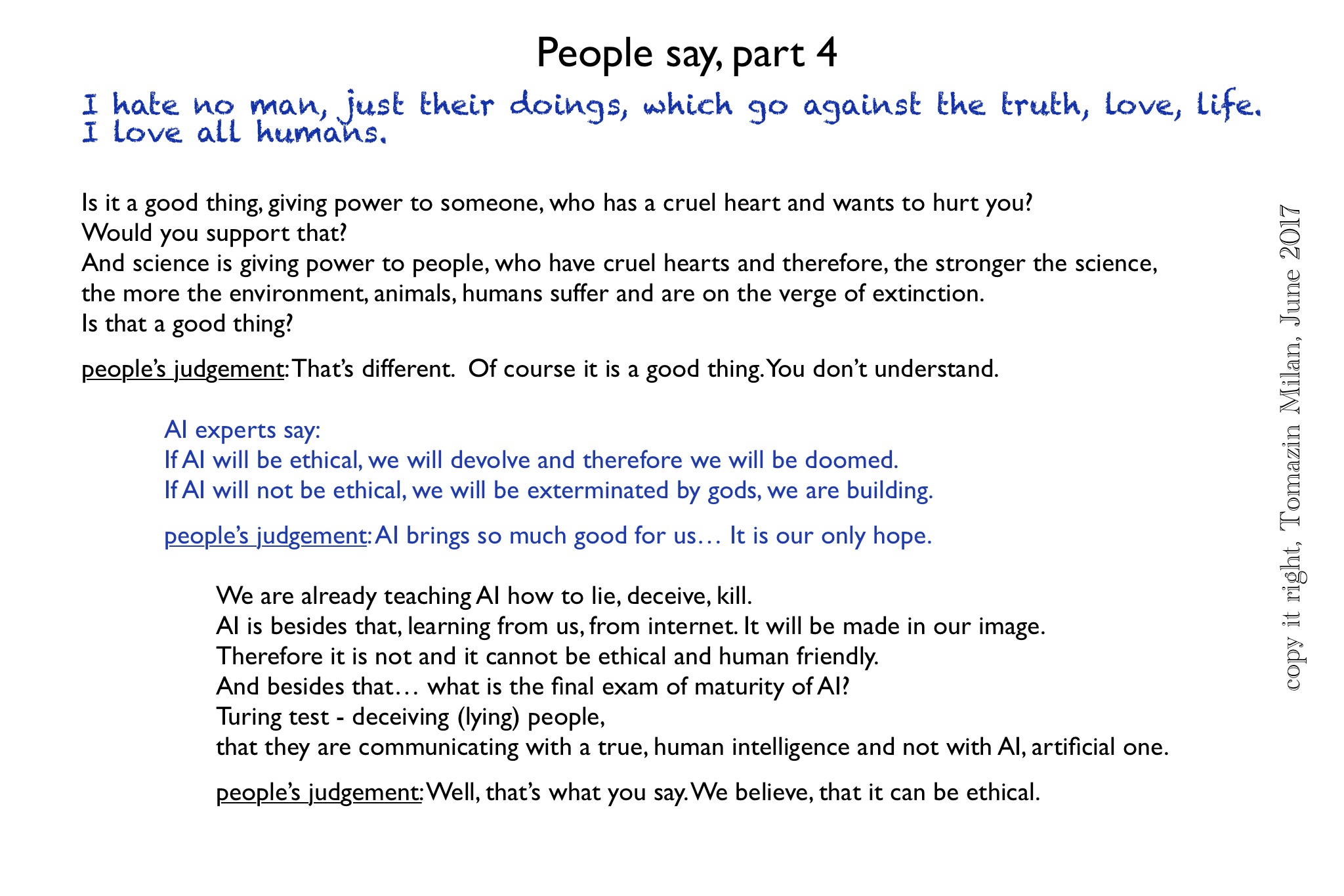 sodba ljudi: Dobro, tako praviš ti. Mi pa verjamemo, da je UI lahko etična.