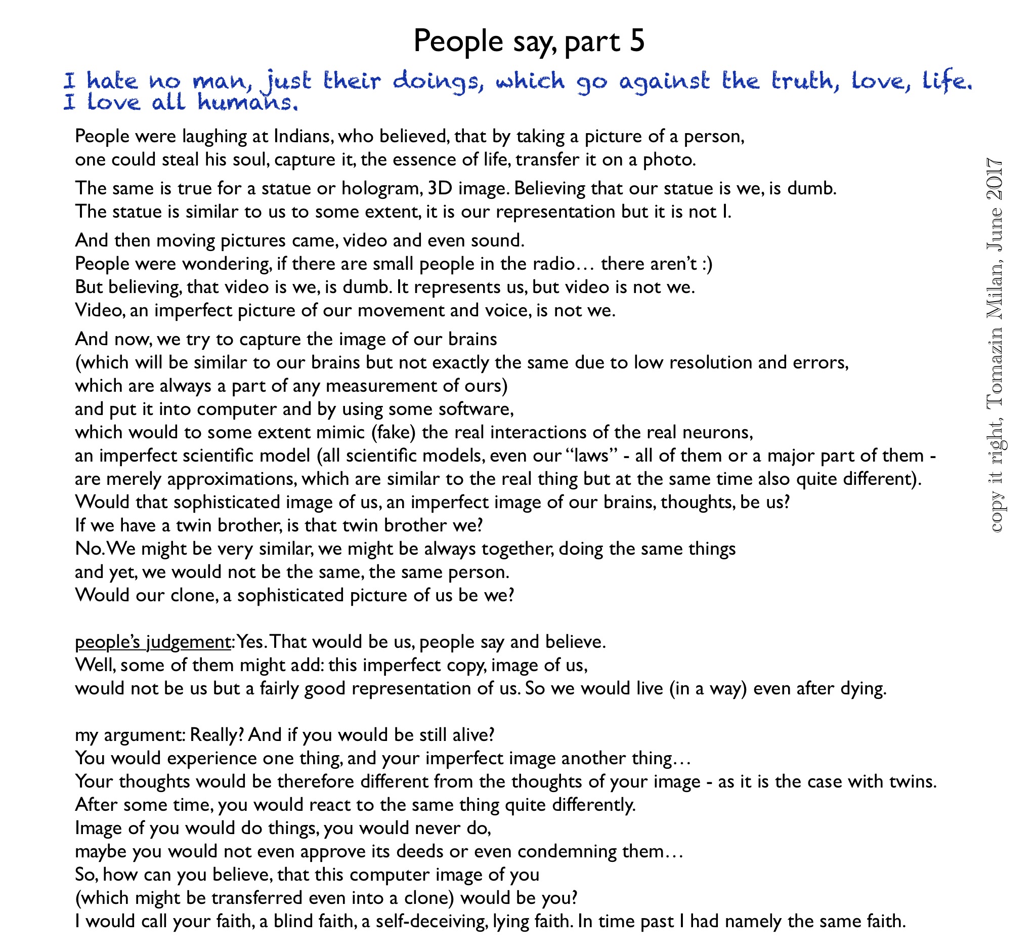 Kako torej lahko veruješ, da bo ta računalniška slika tebe samega (ki bi lahko bila prenesena tudi v klon),