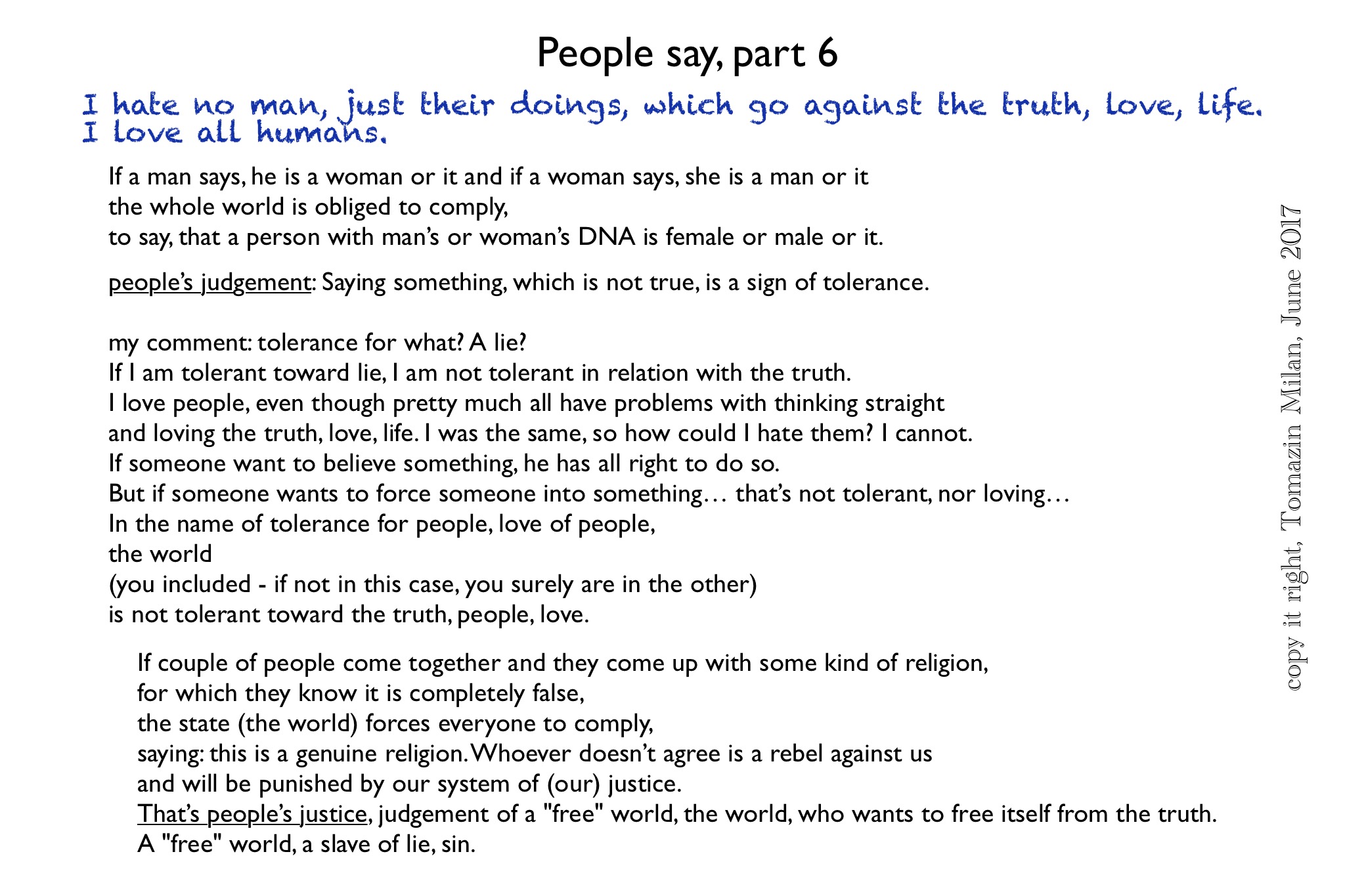 ni tolerantne, strpen do resnice, ljudi, ljubezni.
