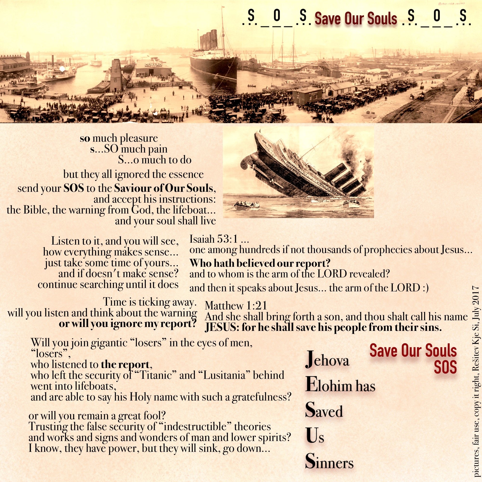 pošlji svoj SOS klic k Odrešeniku naših duš (Saviour of Our Souls)